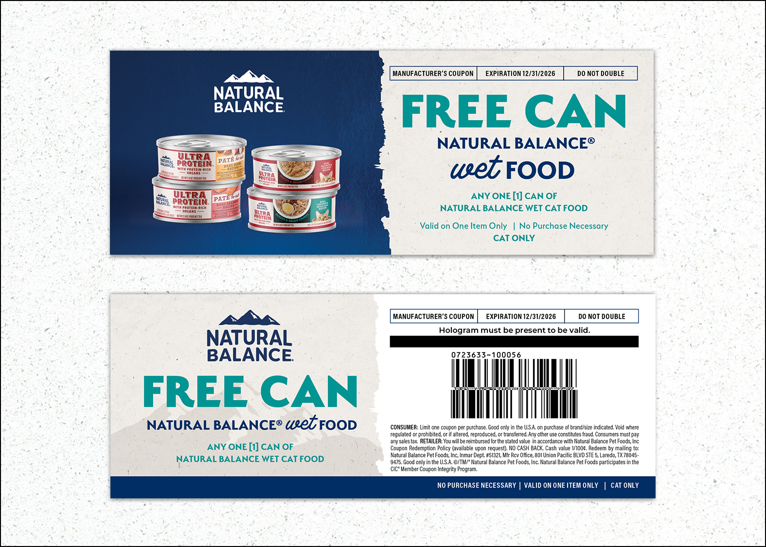 Natural Balance FREE Can Wet Food (CAT ONLY). Maximum Order Quantity: 75 PER MONTH per sales rep